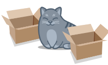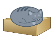 - The cat is on the box. --- The cat is in the box. --- The cat is between the box.