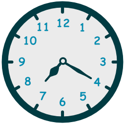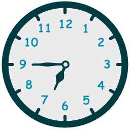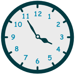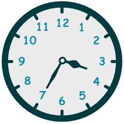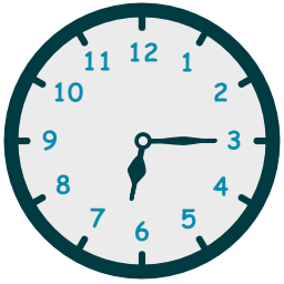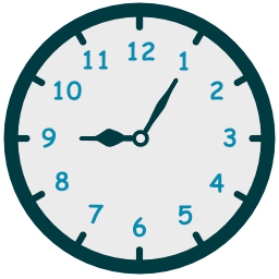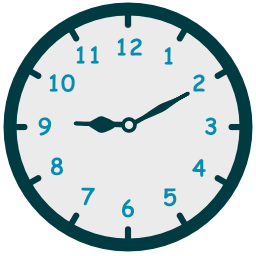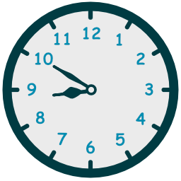 - حين يكون عقرب الدقائق جهة يسار الساعة إستخدم الكلمة to للإشارة إلى عدد الدقائق المتبقية حتى تبدأ الساعة التالية.